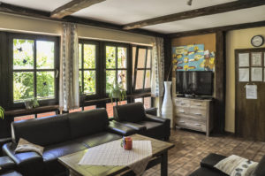 Im Haus hat jedes Kind ein Einzelzimmer. Außerdem können unter anderem das große Wohnzimmer mit Kachelofen, die angrenzende Küche, die Diele mit Billardtisch und Kicker und der Gymnastik- und Mehrzweckraum mit Schwingboden von allen genutzt werden. Insgesamt stehen fast 680 qm Nutz- und Wohnfläche zur Verfügung.